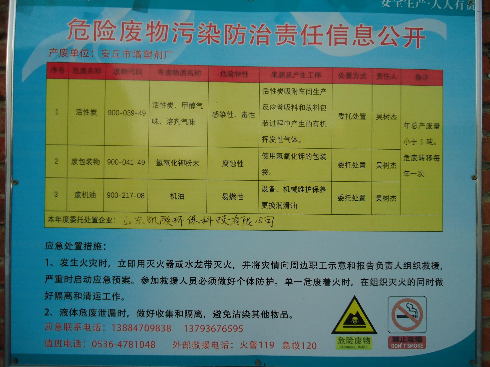 • 危險廢物污染防治責任信息公示 關于安丘市增塑劑廠危險廢物污染防治責任信息公示內容 查看詳情